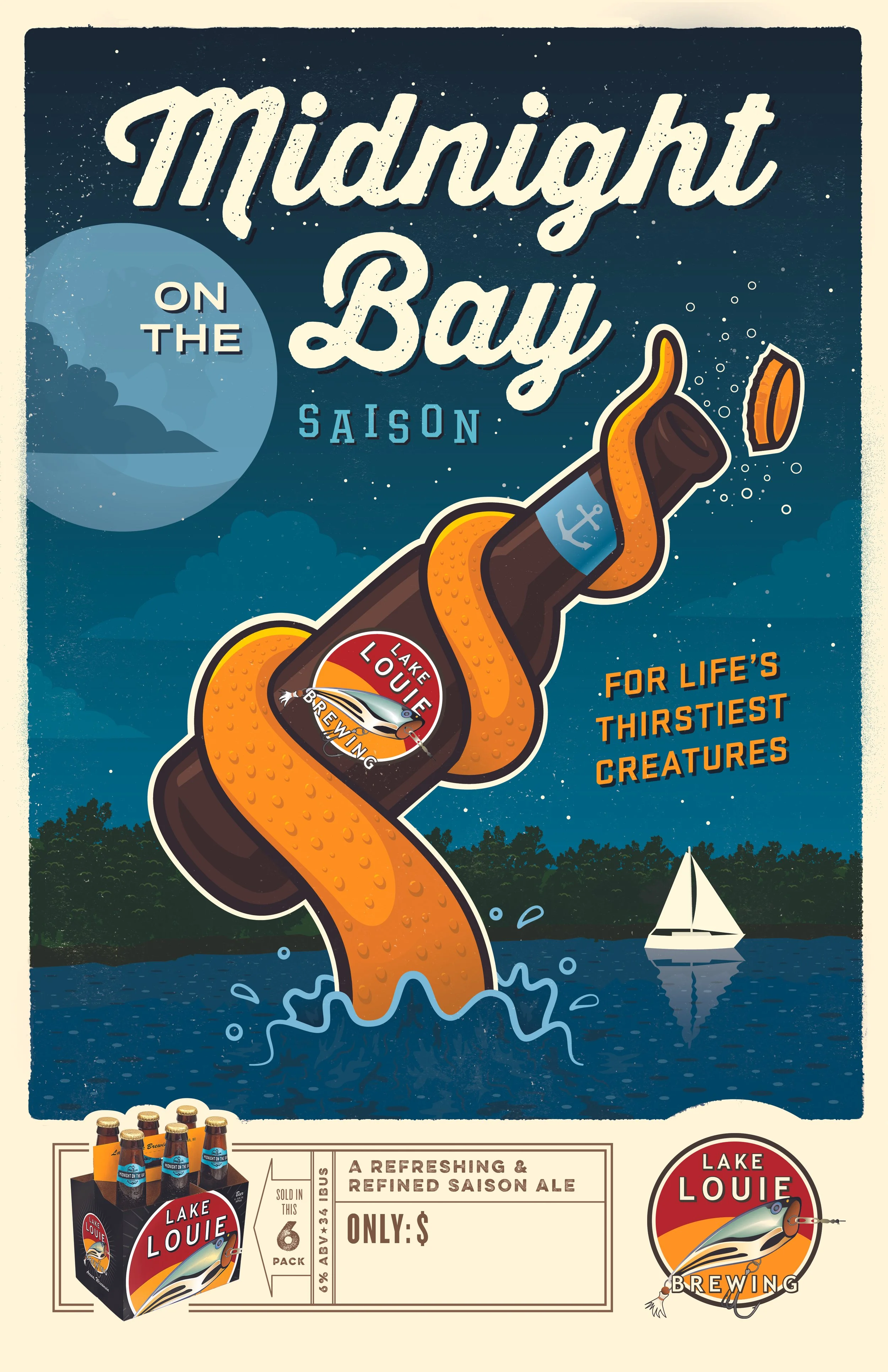 Lake Louie Brewing began as a small microbrewery in Arena, WI and later relocated to Verona, WI. I had the opportunity to create a series of illustrated posters for their different beer flavors. This project was a great exercise in developing eye-catching, cartoonish, and wildly imaginative designs that pushed my creativity. It was a blast sketching ideas, sharing concepts with the client, and bringing them to life as vibrant, colorful scenes.